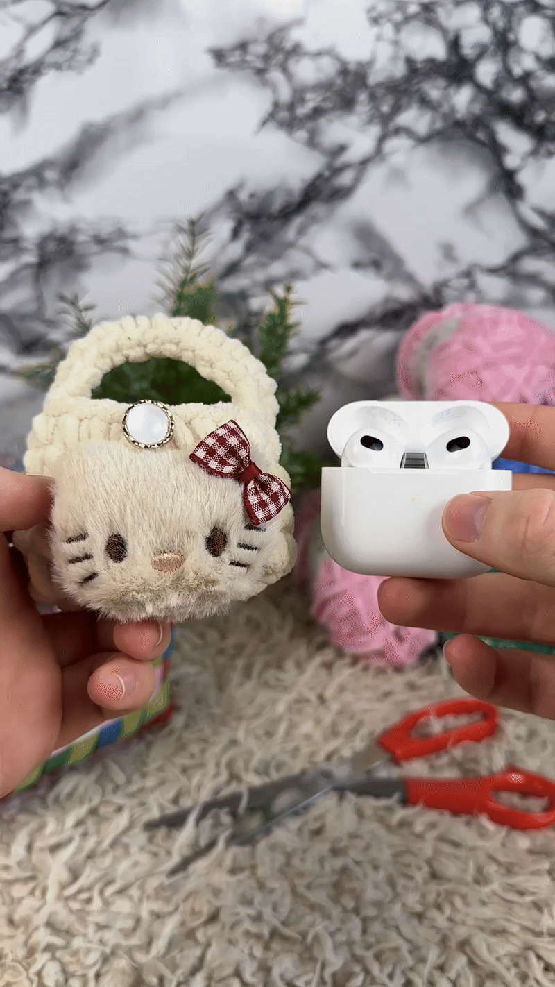 Fits all kinds of earphones—not just AirPods. And yes, it closes with a soft loop-over-button so nothing falls out. Cute, soft and smart 🐱🎀🎧
